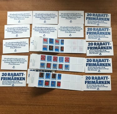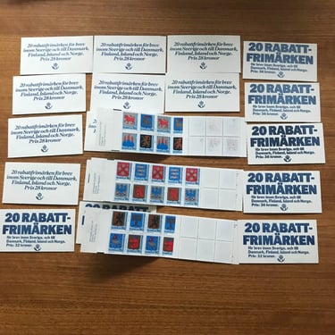Svenska frimärken giltiga för frankering från 1960-talet fram till 2026. T.ex. årssatser från 1997-2025 eller rabatthäften 1979-90, häften eller rullar.